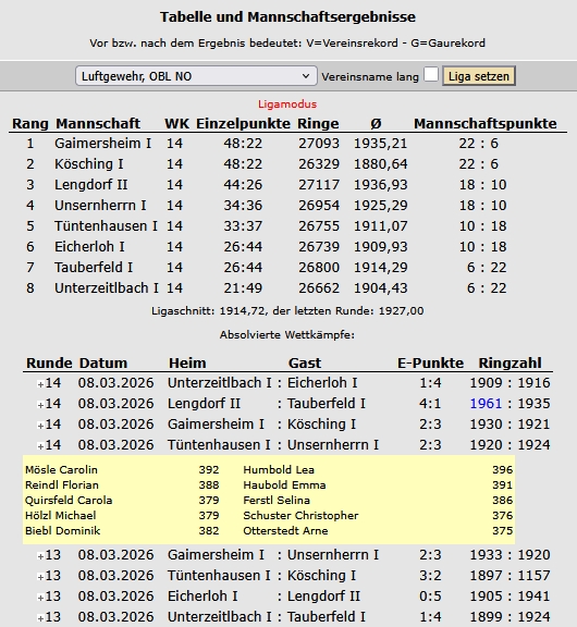 Das Finale A-LGA wird aus den acht besten Schützen der Jahreswertung bestritten.