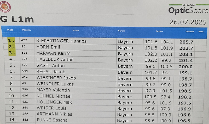 David Ott erzielt mit 404,1 Ringen einen persönlichen Rekord, erreicht damit Platz 6 bei Luftgewehr Junioren II, und erstmalig auch die Qualifikation zur Deutschen Meisterschaft im August.
