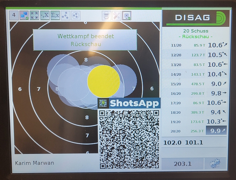 Karim Marwan mit persönlichen Rekord von 203,1 Ringen auf Platz 3.