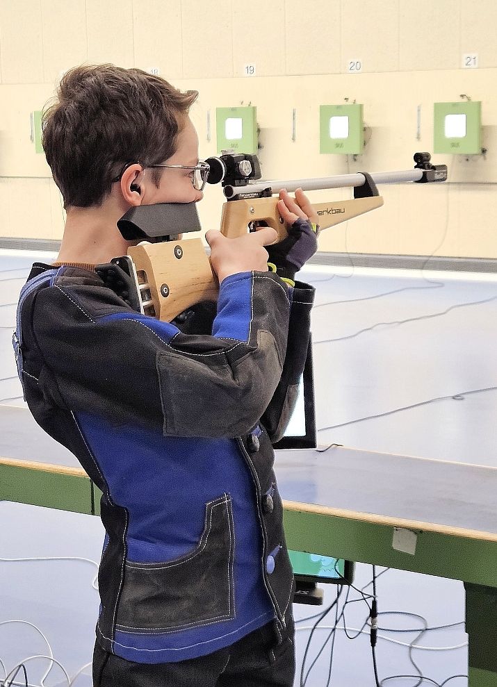 Leonas Greiling hat sich mit dem Lichtgewehr bei Freihand Schüler II für die DM am 9. August in Frankfurt qualifiziert.